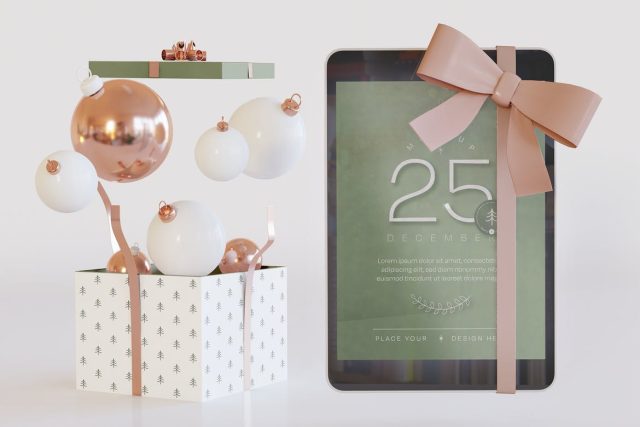 Tablet Mockup with Christmas Decoration