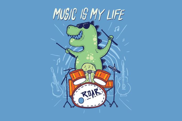 cute dinosaurs are drumming