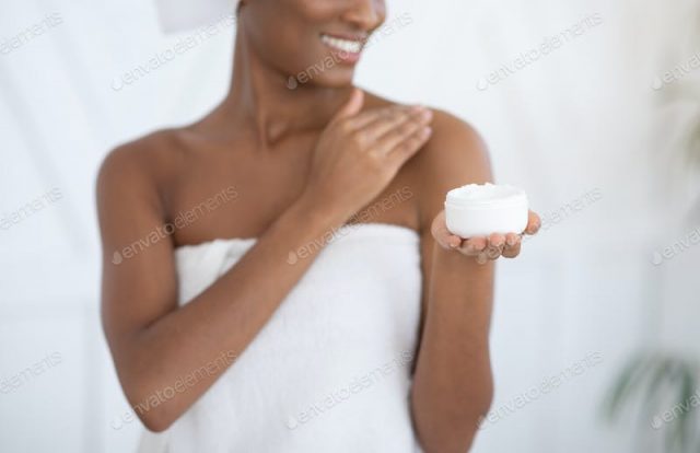 Advertising of cosmetic product for body skin moisturizing and anti aging