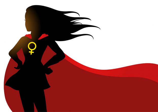 superheroine red cape with female symbol
