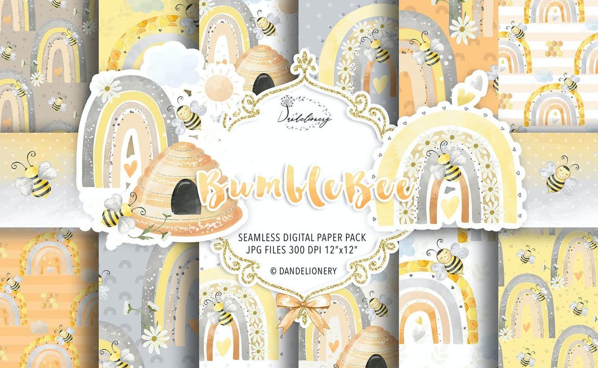 Bumble Bee Rainbow digital paper pack