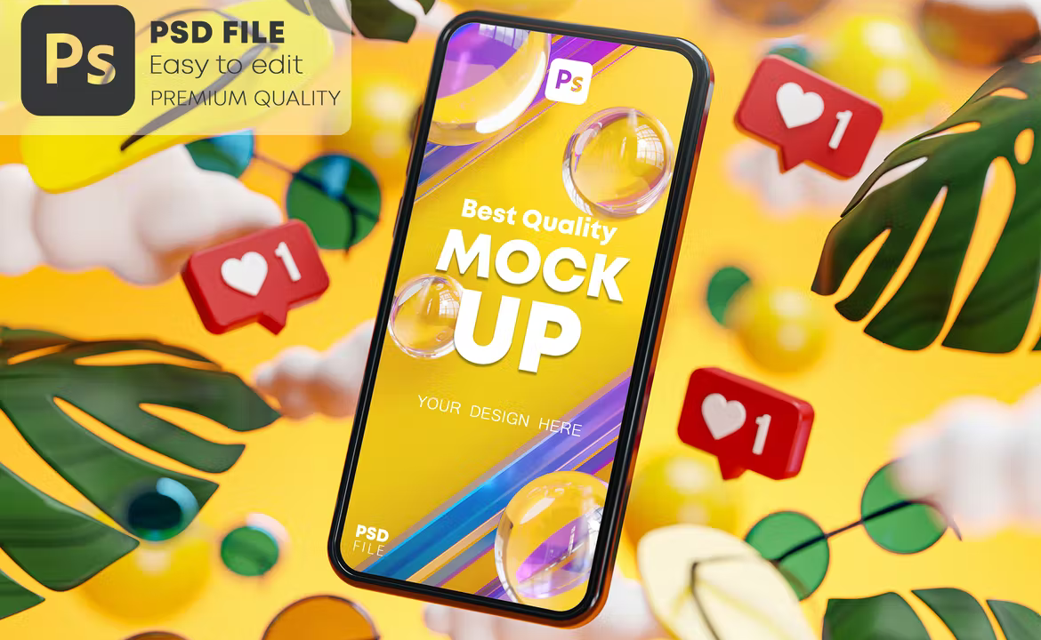 Phone Mockup Summer Yellow Tropical Concept 3D