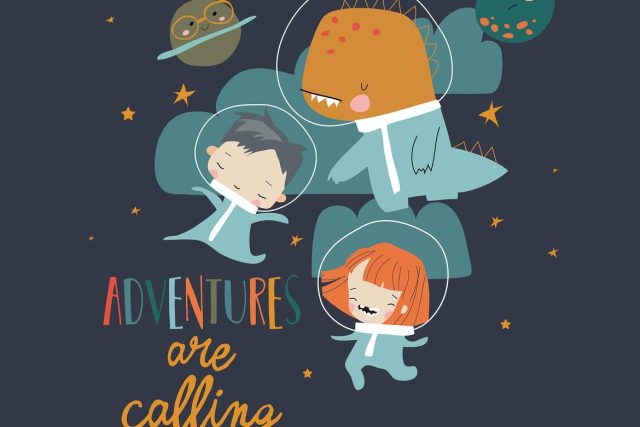 Cute Astronaut Playing Skateboard On Moon Cartoon