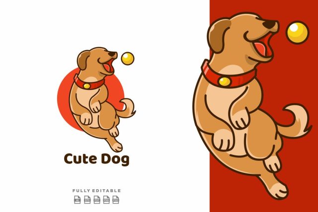 Cute Dog Play Ball Logo