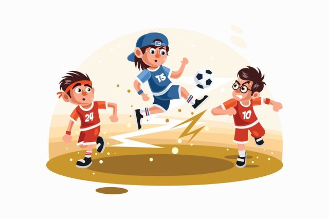 Kids Playing Football Vector Illustration
