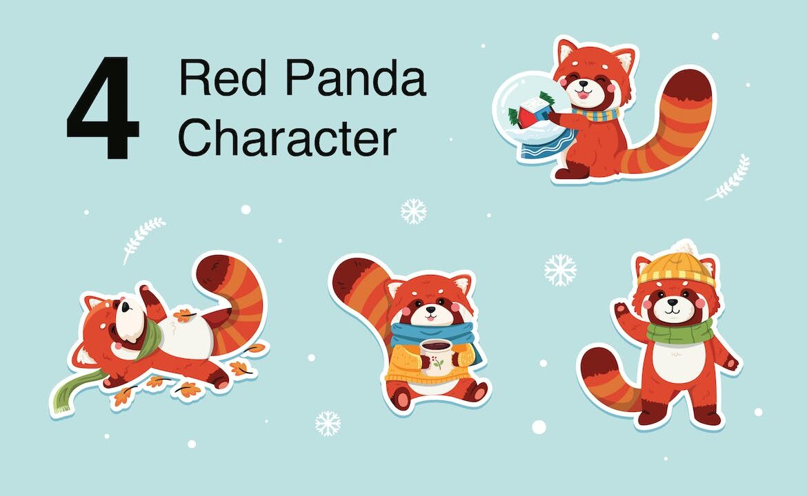 Winter Red Panda Character Illustration