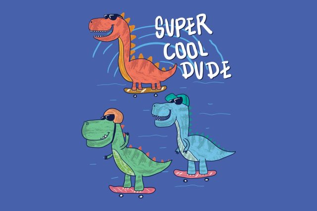 cute dinosaur playing skateboard