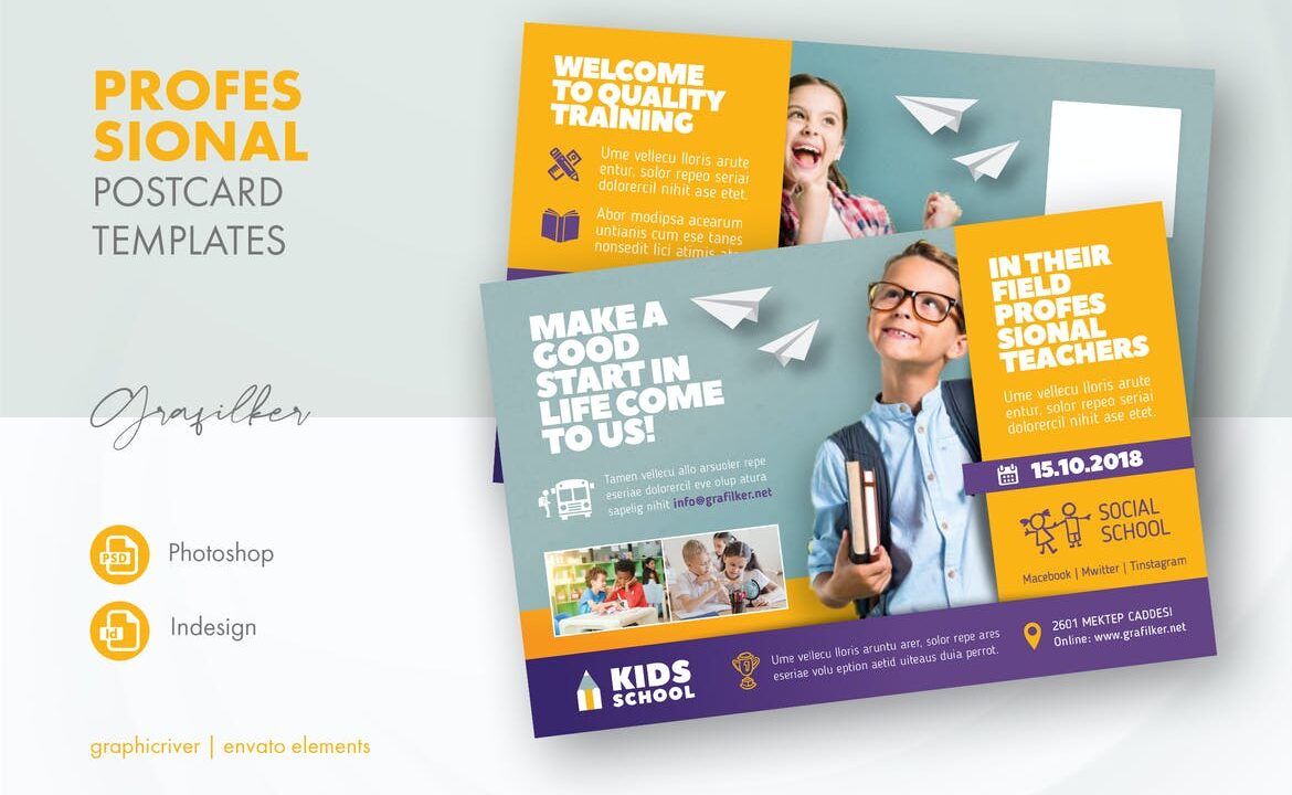 Kids School Postcard Templates