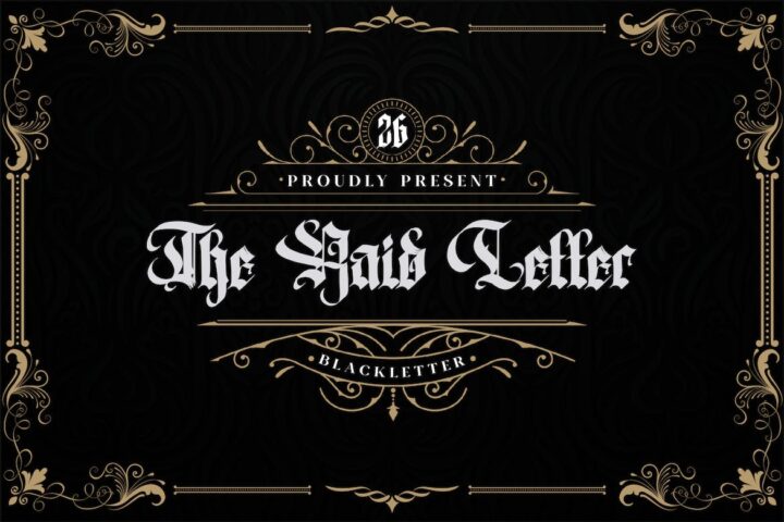 The Raid Letter is an elegant and classic blackletter font that will impress with its stylish features. Use it for product packaging, branding, or other projects that need bold and daring typography!