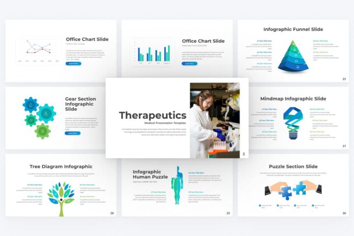 Therapeutics Medical PowerPoint Template We can easily find lots of amazing presentation templates nowadays. And so, we need to shift the way we think not just to show the perfect slides, but to elevate the experience within it. Here we present to you Infographic Pack for accompanying every stage of your business development with holistic brand touchpoints, from embarking on a new project, building recognition among competitors, and finishing it with an improved goal proposition.