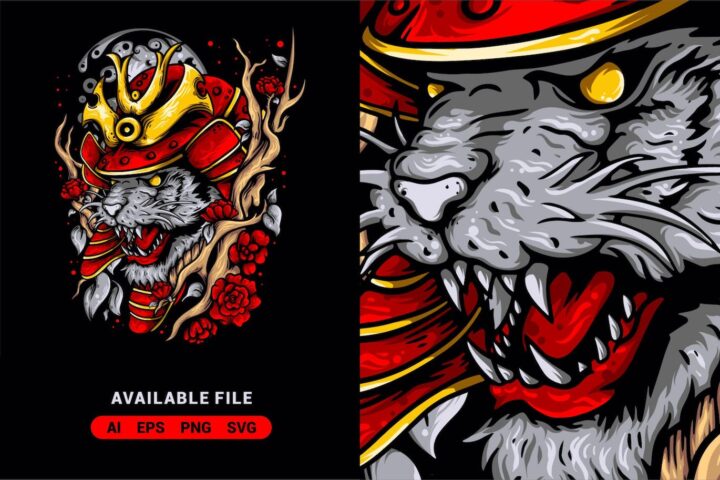 Warrior, Angry, Fighter, Helmet, Predator, Tiger, Samurai, Vector, Sword, Animal, Armor, Shogun, Bushido, Knight, Military,