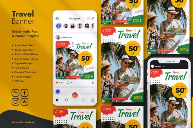 This is social media template for Travel agency. This template are fully editable and customisable(text, color scheme, photo, & other graphics)