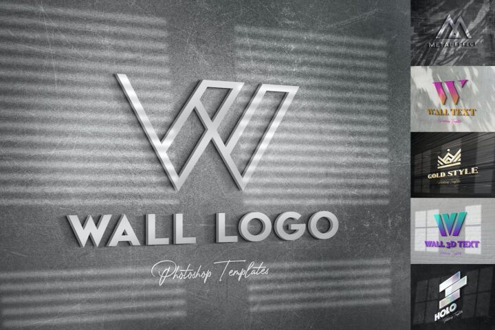 Wall Text or Logo Mockups Set of 6 PSD templates for your TEXT or LOGO Also you can use shapes, vector objects, smart objects, pixel layers ect.