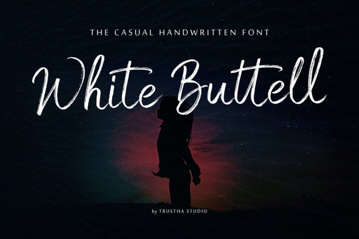 White Buttell is a handwritten brush script font. It has a natural style of a dry marker which makes it perfect for branding, advertising, poster designs, logos, book covers, magazines, packaging, website headers, and more.